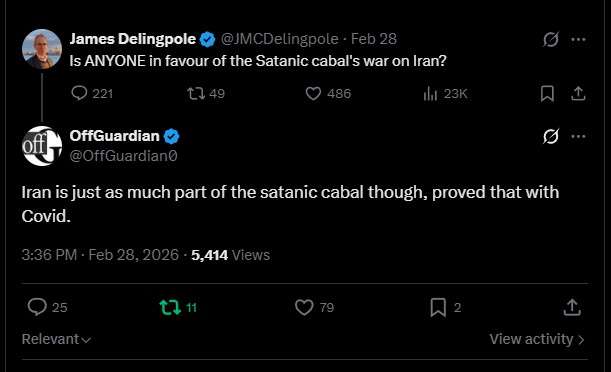 Kiedy w sobotę oficjalnie rozpoczęła się wojna z Iranem, zdenerwowałem sporo osób, odpowiadając Jamesowi Delingpole’owi na Twitterze tym komentarzem: