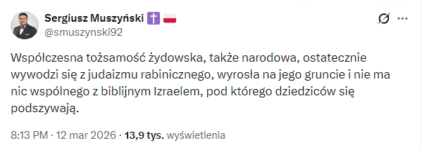 Podobne poglądy nt. praw Izraela do ziemi Palestyny i fikcyjnośći istnienia narodu żydowskiego głosi prof. Szlomo Sand z Uniw. w Tel Awiwwie.