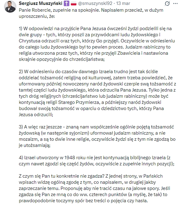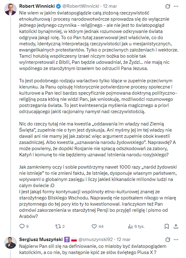 Dwa stanowiska. Nic nie podpowiadam, nic nie sugeruję. Być może tytuł powinien brzmieć bardziej prowokująco: Izrael – państwo czy lud Boży?