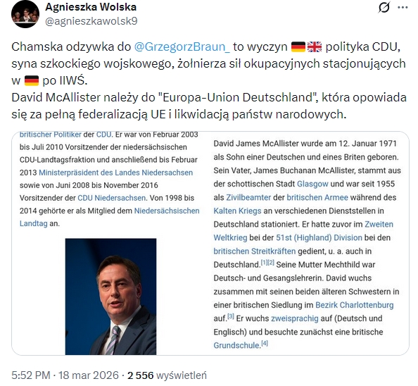 Kim jest niemiecki polityk David McAllister? Jest zwolennikiem jednego z głównych założeń manifestu komunistycznego Spinellego polegającego na zlikwidowaniu państw narodowych.