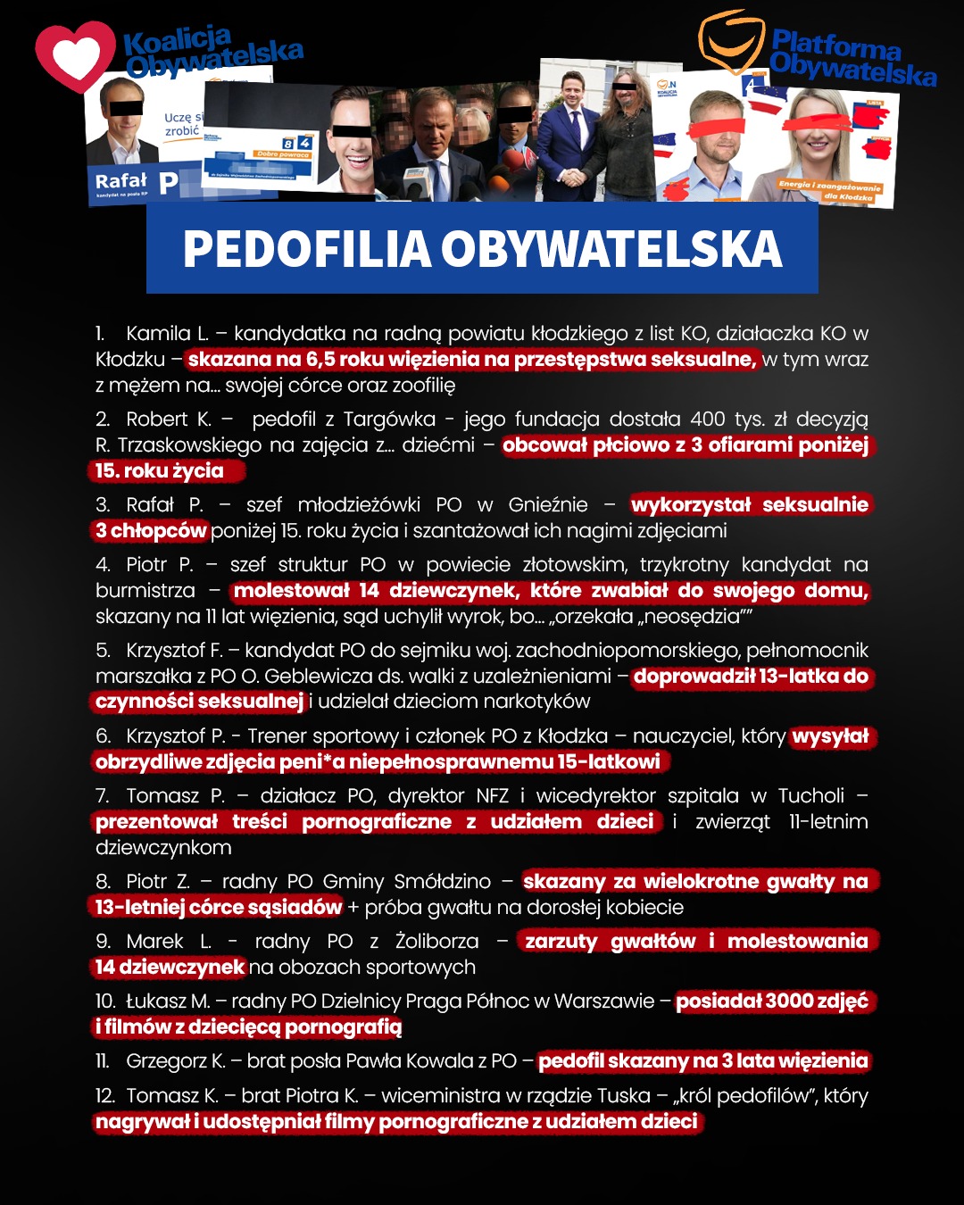Ostatnia, głośna afera zakończona nieprawomocnym wyrokiem za pedofilię i zoofilię nie jest jedyną. Jak zawsze, w takich i podobnych sprawach, politycy KO nie chcą się wypowiadać.