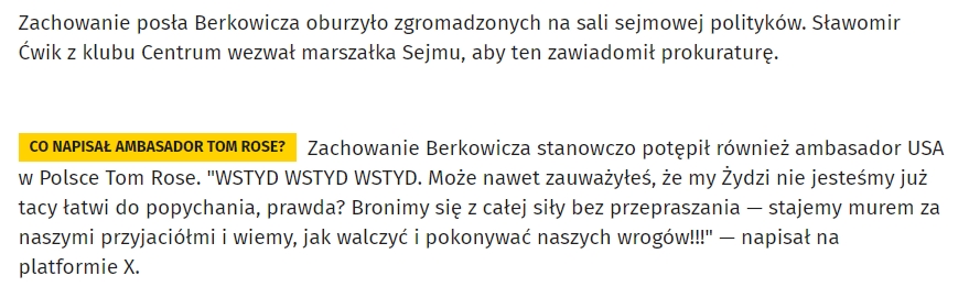 Na czołówkach mediów “głównego ścieku” pojawiło się słowo “skandal” odnoszące się nie do opisanych ludobójczych praktyk państwa Izrael w stosunku do dzieci zabijanych bombami fosforowymi, lecz do zachowania posła Berkowicza.