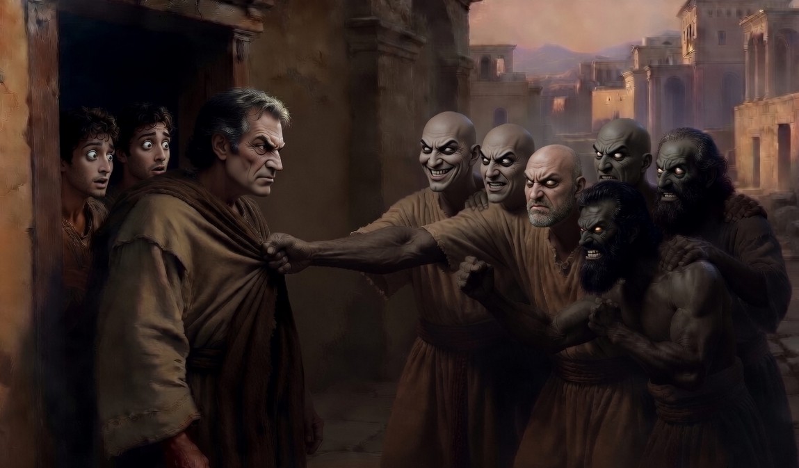 “Mieszkańcy Sodomy, znani ze swojej niegodziwości, otoczyli dom Lota. Zażądali wydania przybyszów, aby ich zgwałcić”. AIX